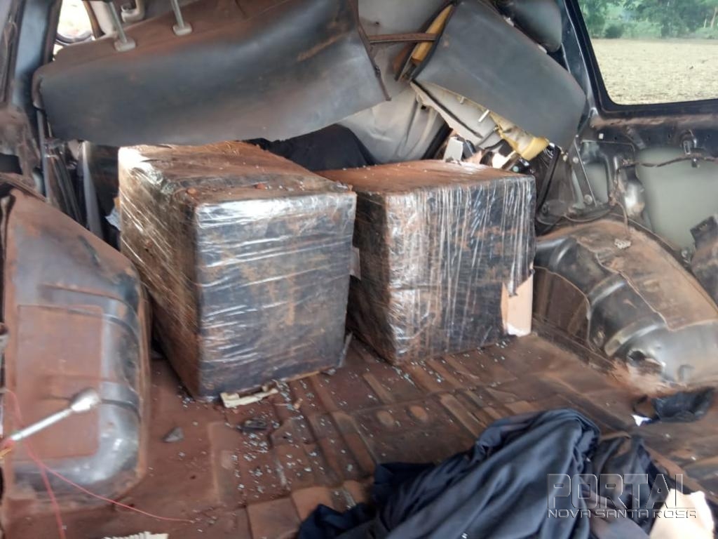No carro haviam vários pacotes de cigarros oriundos do Paraguai.