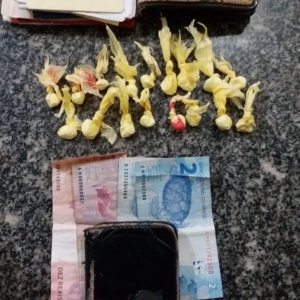 A equipe policial realizou novas buscas no veículo Fiat/Uno, sendo encontrado dentro do forro do banco do motorista mais 15 unidades buchas de cocaína totalizando 11 gramas), fracionadas e embaladas, prontas para o comércio.