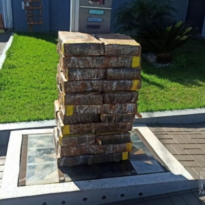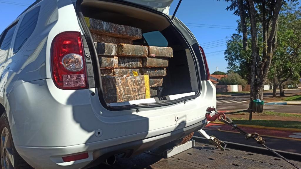 No Renault havia 22 fardos de maconha que posteriormente pesado, totalizou 252,7 kg de maconha.