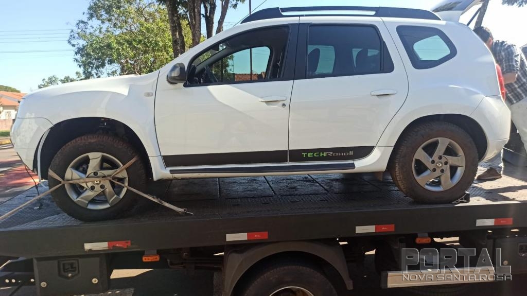 Os policiais realizaram o retorno para iniciar uma perseguição e acionaram apoio da equipe RPA de Ouro Verde do Oeste para efetuar a abordagem que logo então visualizaram o Duster e na tentativa de abordagem o condutor fugiu entrando em uma estrada rural em um milharal com o carro.