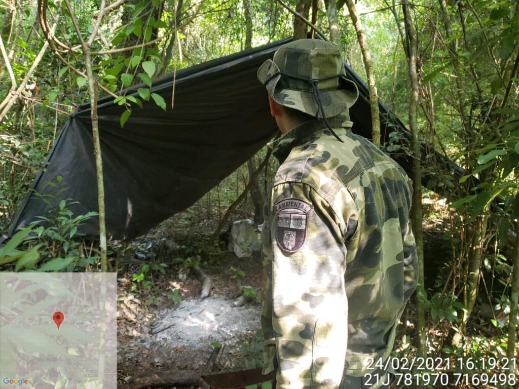 O acampamento foi destruído evitando que continue a ser utilizado para prática de crimes ambientais.