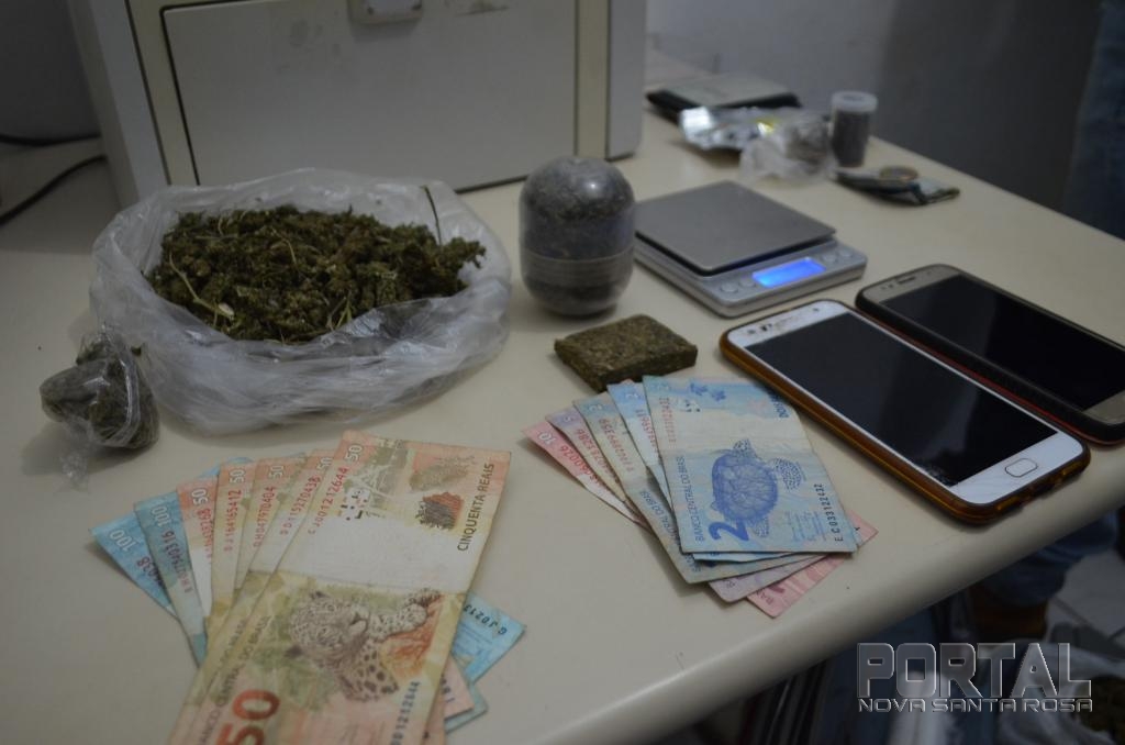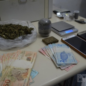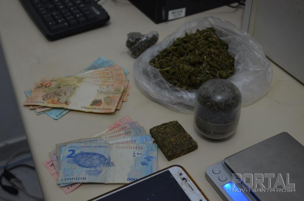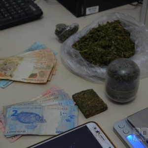 Com a mulher foi localizado, no interior de sua bolsa, uma sacola contendo “murruga” (flor da maconha, que possui alto valor comercial, sendo comercializada pelo valor de 3,00 a 5,00 reais a grama) que após pesada, totalizou 46 g (quarenta e seis gramas), e a quantia de 471,00 (quatrocentos e setenta e um) reais.