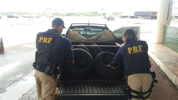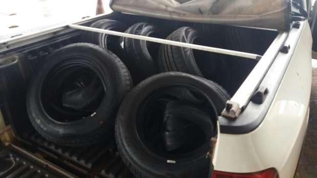 No compartimento de carga e no banco do passageiro da Volkswagen Saveiro os policiais encontraram 35 pneus trazidos do Paraguai. O condutor, um rapaz de 29 anos, afirmou que revenderia os produtos em Tamboara, no Noroeste do estado.