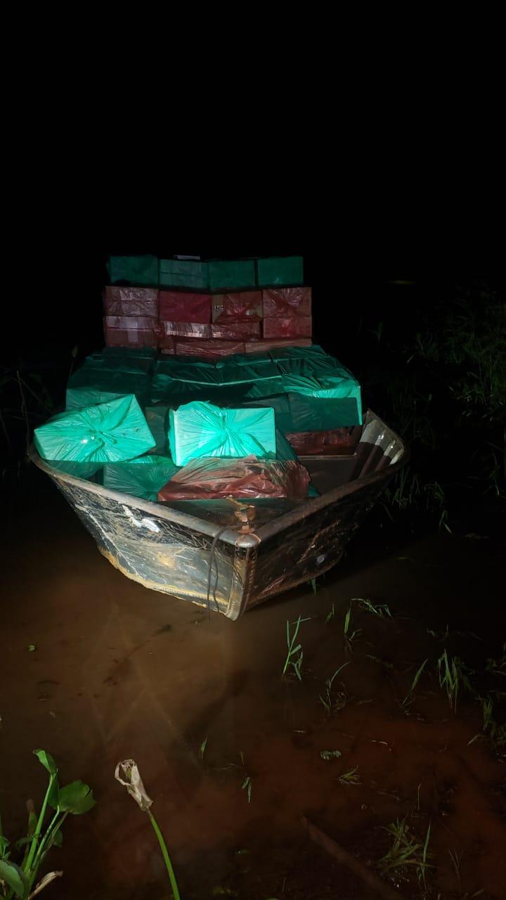 Ao se aproximarem para efetuar a abordagem, constatou-se que várias pessoas estavam fazendo o transbordo de cigarros oriundos do Paraguai.