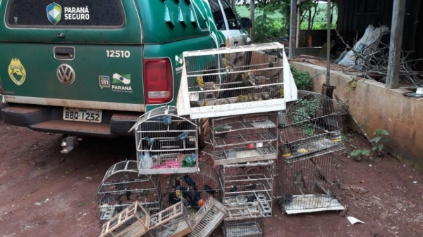 O Batalhão da Polícia Ambiental em Toledo encontrou uma residência ontem com 131 aves.