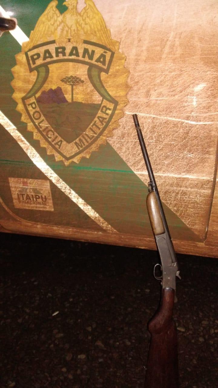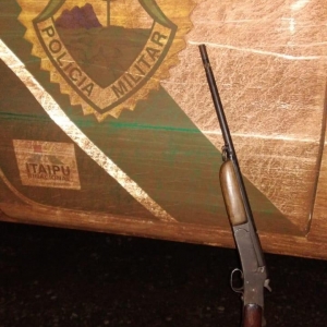 Uma equipe pertencente à 5 ª CIA de Polícia Ambiental Força Verde, durante o patrulhamento pelo distrito de Sub Sede no município de Santa Helena no final da tarde de ontem (05), próximo ao entreposto da cooperativa Coopagril, ao realizar incursão a pé na área de preservação permanente da Itaipu, localizou uma Honda CG, na entrada de uma trilha. Feito o patrulhamento na trilha foram localizados e abordados dois indivíduos, e próximo a eles no chão uma espingarda calibre .22 com 07 munições intactas dentro de uma mochila.