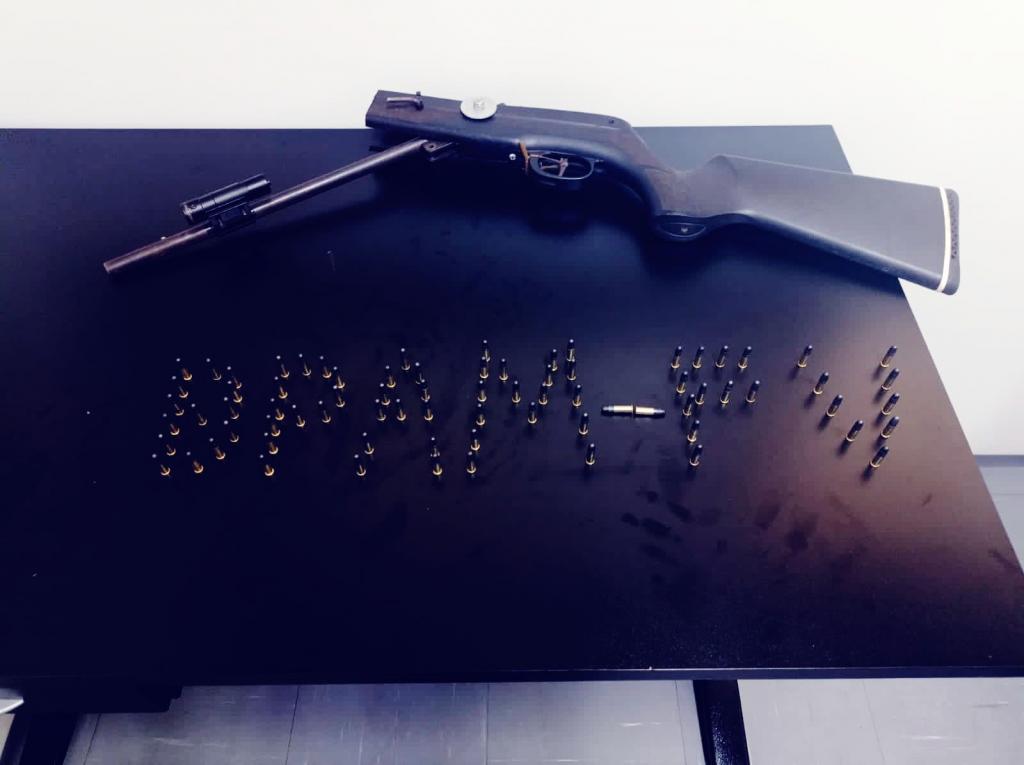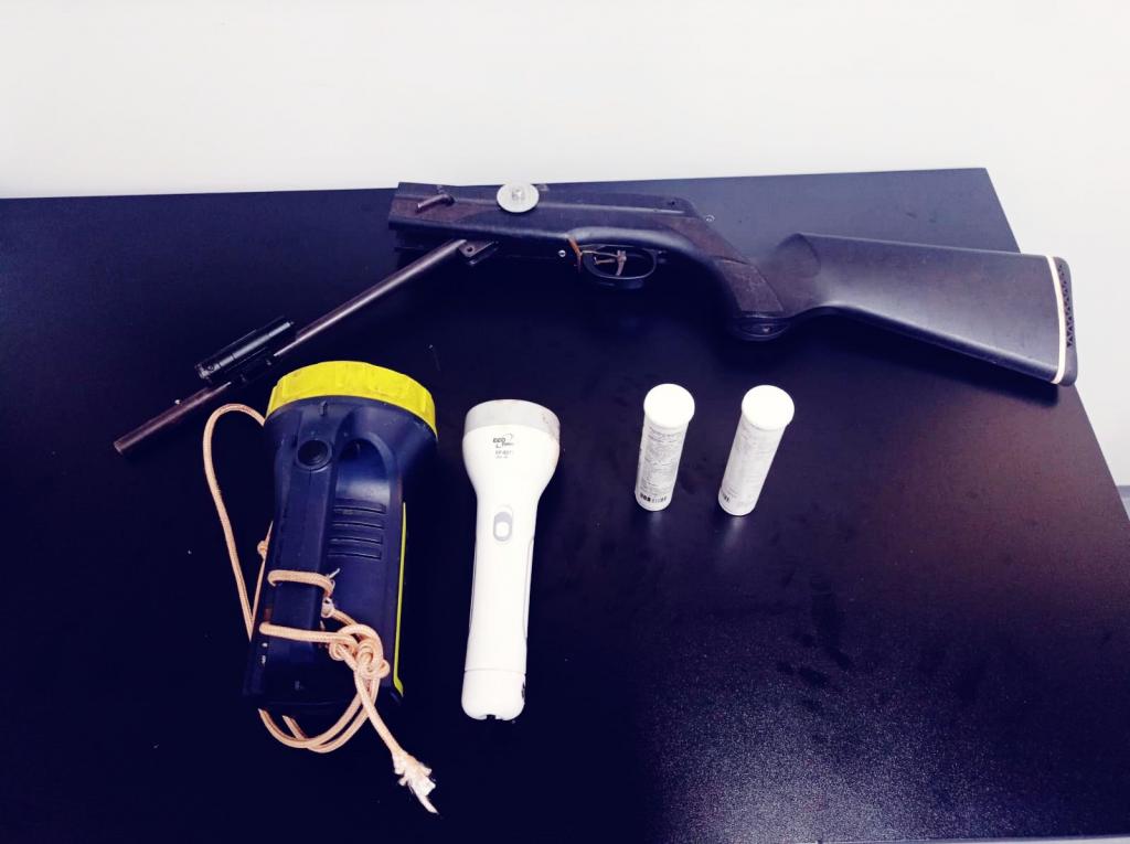 Os policiais flagraram o rapaz andando por uma estrada rural empunhando uma arma longa, de imediato a equipe abordou o suspeito, constatando ser uma espingarda calibre .22, artesanal, sem numeração de identificação.