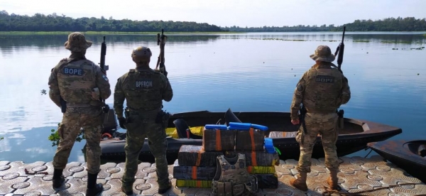 Na segunda-feira (25), policiais militares do BPFRON - Batalhão de Polícia de Fronteira, policiais militares do BOPE - Batalhão de Operações Policiais Especiais e policiais federais realizavam patrulhamento aquático em Pato Bragado, quando visualizaram uma embarcação saindo da margem paraguaia e deslocando para a margem brasileira.