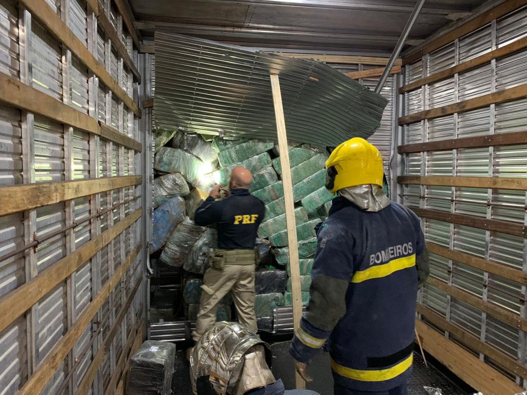 A apreensão ocorreu durante uma abordagem de rotina. Ao vistoriar a parte interna de uma carreta, a equipe encontrou os ilícitos escondidos escondidos em um compartimento falso.