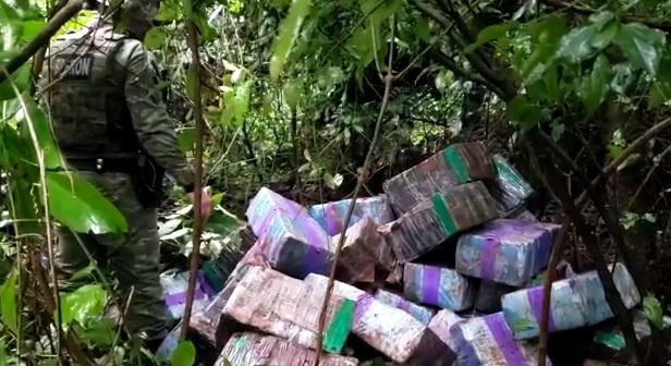 Com a aproximação policial, indivíduos que ali estavam fugiram abandonando fardos que totalizaram 913,5 kg de maconha.