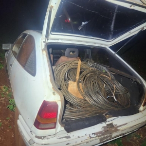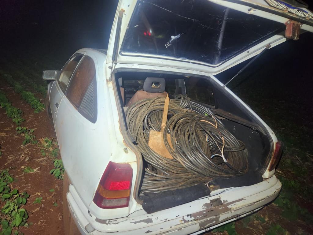 Durante a vistoria, foram encontrados fios elétricos e ferramentas no porta-malas do carro, materiais que podem ter sido utilizados em furtos.