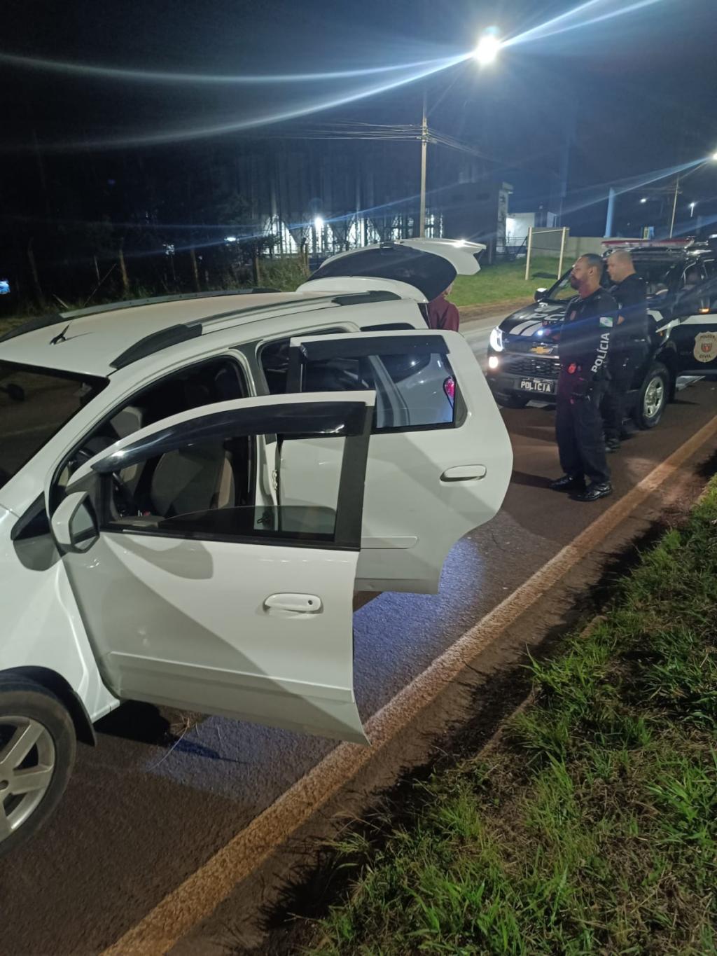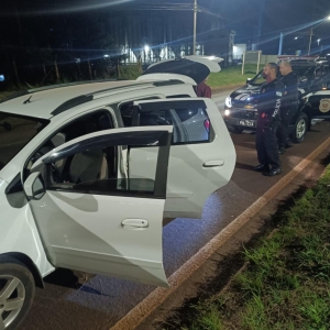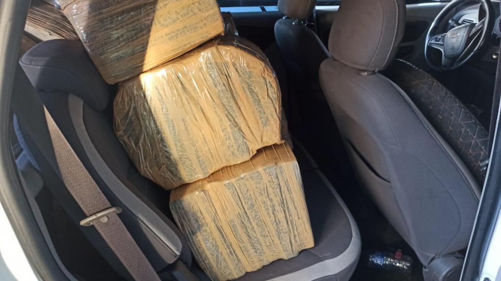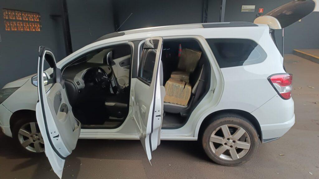 Na rodovia já no município de Toledo, os policiais avistaram um veículo Spin suspeito, resolveram fazer a abordagem e ao verificarem o interior do mesmo constataram que estava carregado com maconha.