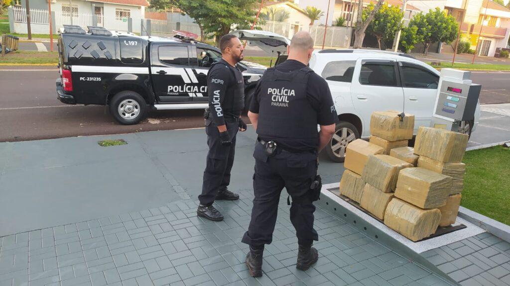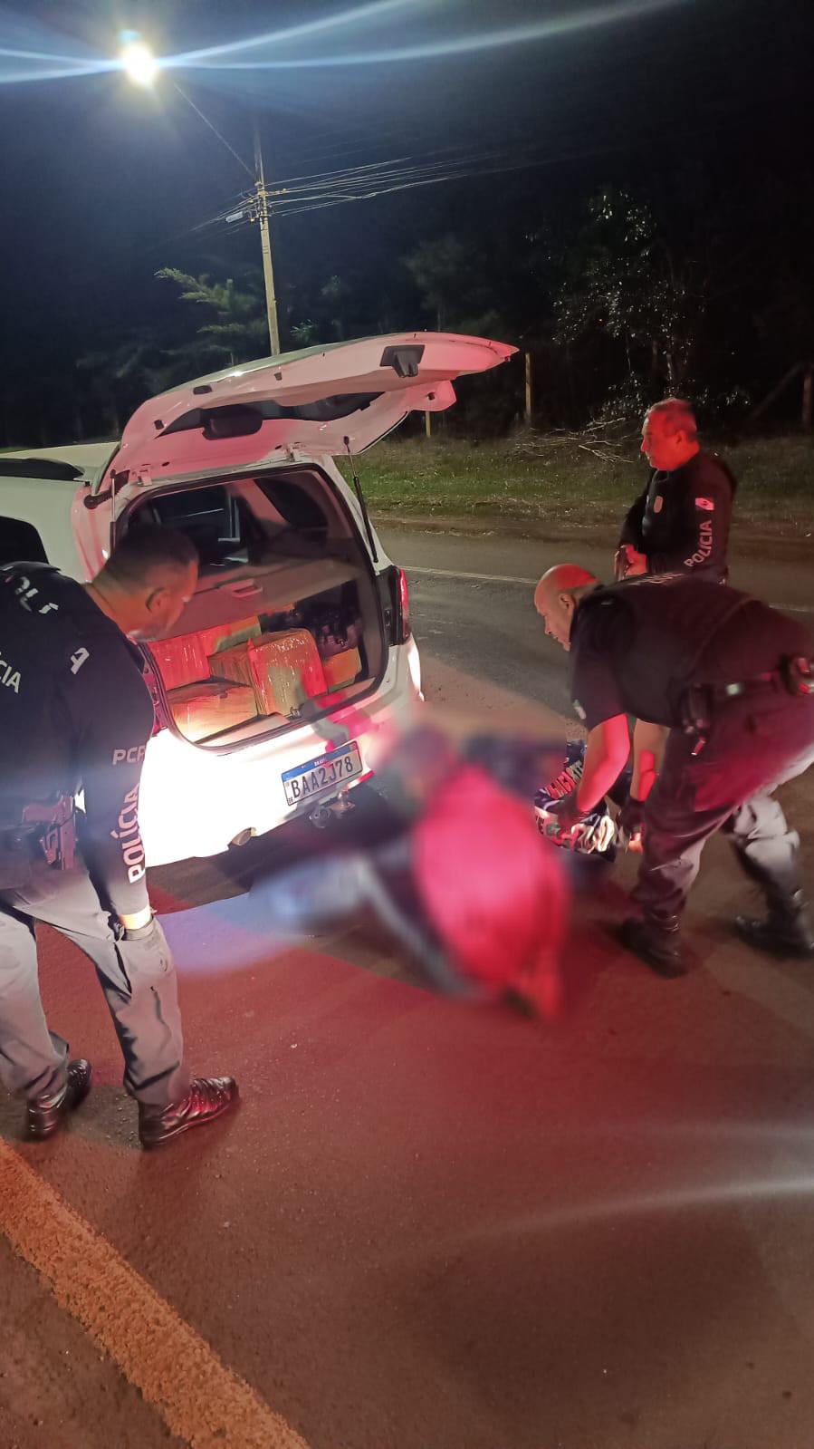 No veículo estavam dois jovens, um de 18 anos e outro de 17 anos, os quais confessaram ter pego a droga na cidade de Ponta Porã e levariam até Pato Bragado.