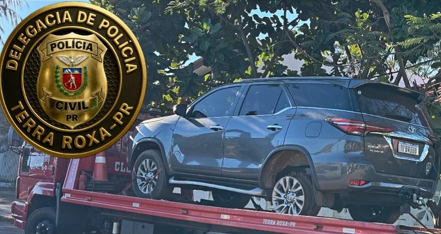 Na tarde de ontem, segunda-feira (11), a Delegacia de Polícia Civil de Terra Roxa, sob a chefia do Delegado Pedro Lucena, localizou e recuperou, na área rural do município, uma camionete Toyota Hilux SW4, de cor cinza, que havia sido furtada na madrugada do mesmo dia, no município de Palotina.