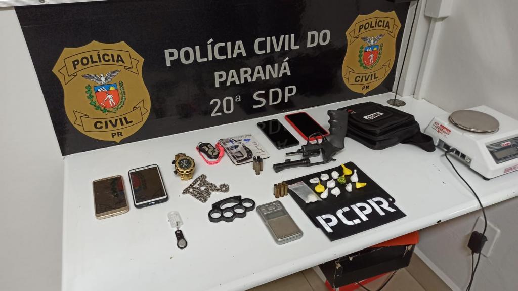 Policiais Civis da 20ª Subdivisão Policial de Toledo apreenderam uma adolescente de 16 anos de idade num bairro do distrito de Novo Sarandi, a qual tinha em sua posse em uma residência situada na Rua Goiânia um revólver calibre .38, além de 13 porções de "Cocaína", as quais totalizaram aproximadamente 20 gramas.