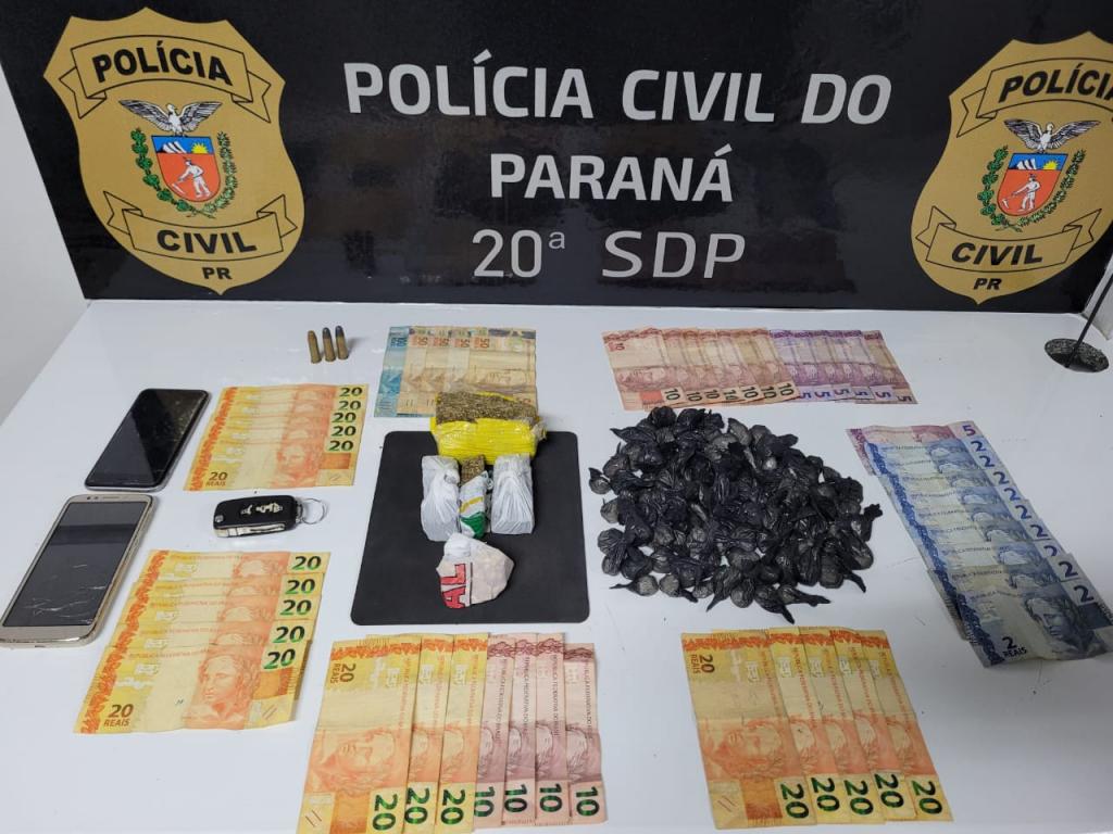 Também apreendidas 3 munições calibre .38 e quantia em dinheiro. Os dois indivíduos foram autuados pelo crime de Tráfico de Drogas e recambiados à Cadeia Pública local onde estão à disposição da Justiça Criminal da Comarca.