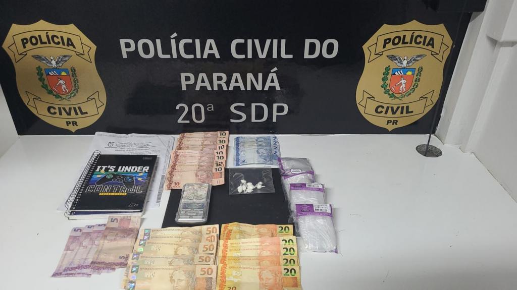 Na tarde desta terça-feira (07) Policiais Civis da 20ª Subdivisão Policial de Toledo realizaram a prisão de um homem de 39 anos de idade, residente na Rua Pindotiporã, Jardim Coopagro, o qual mantinha em sua posse na residência 08 porções de "Cocaína", uma balança de precisão para pesagem da droga, embalagens usualmente utilizadas para embalo da droga, R$ 478,00 em espécie, além de cadernos com anotações referentes à "contabilidade do tráfico".