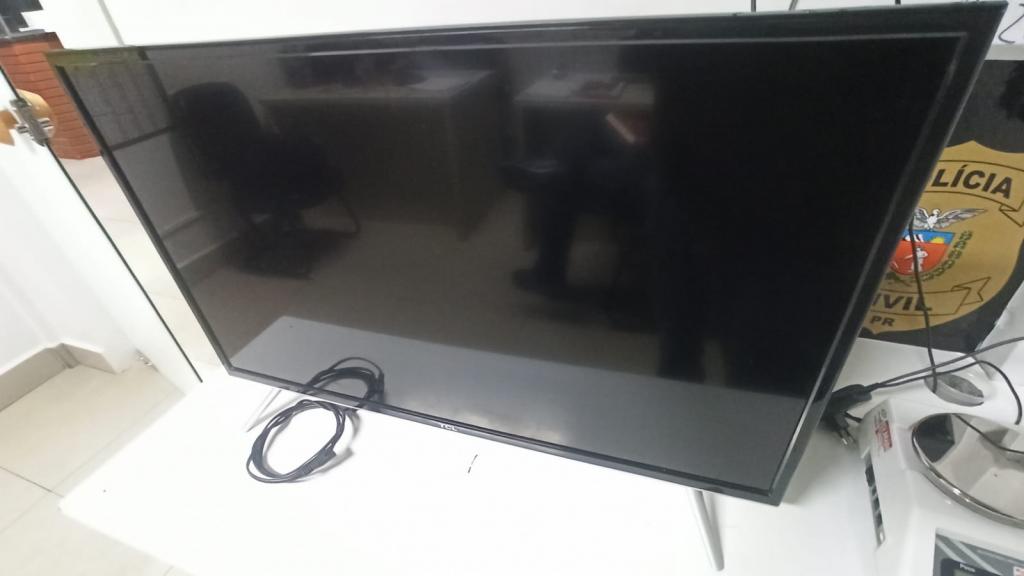 A televisão roubada foi recuperada e devolvida à proprietária, mas o celular não foi localizado, nem a pistola usada no crime.