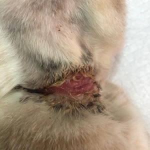 Os policiais ao chegarem na residência localizada no Jardim Bressam, encontraram um gato apresentando cortes graves em seu pescoço e um cachorro também vítima de maus tratos.