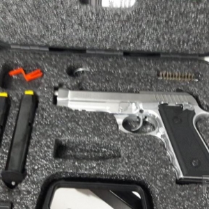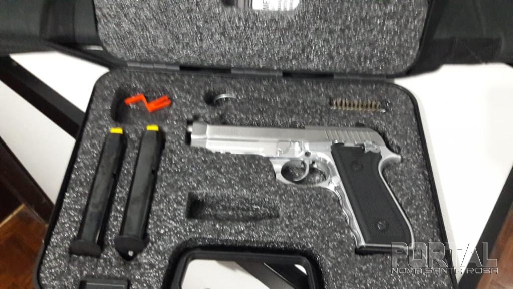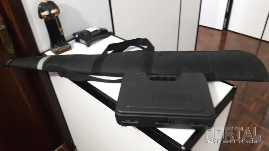 As armas recuperadas é uma pistola da marca Taurus e uma espingarda