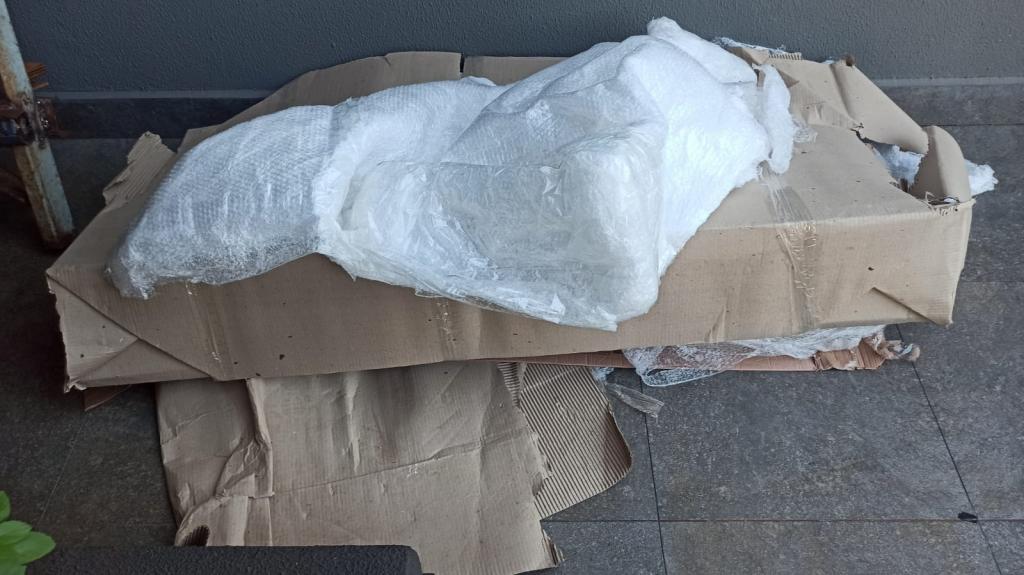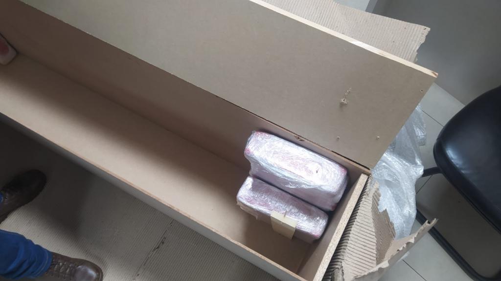 A droga foi encontrada em meio a uma caixa de papelão para o transporte de móveis novos. Junto com as peças dos móveis, foram encontrados 96 tabletes de maconha, que após pesados, totalizaram 102 kg da droga.