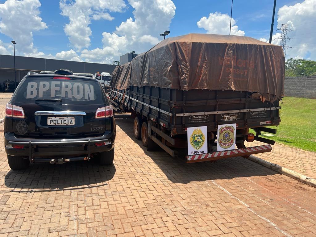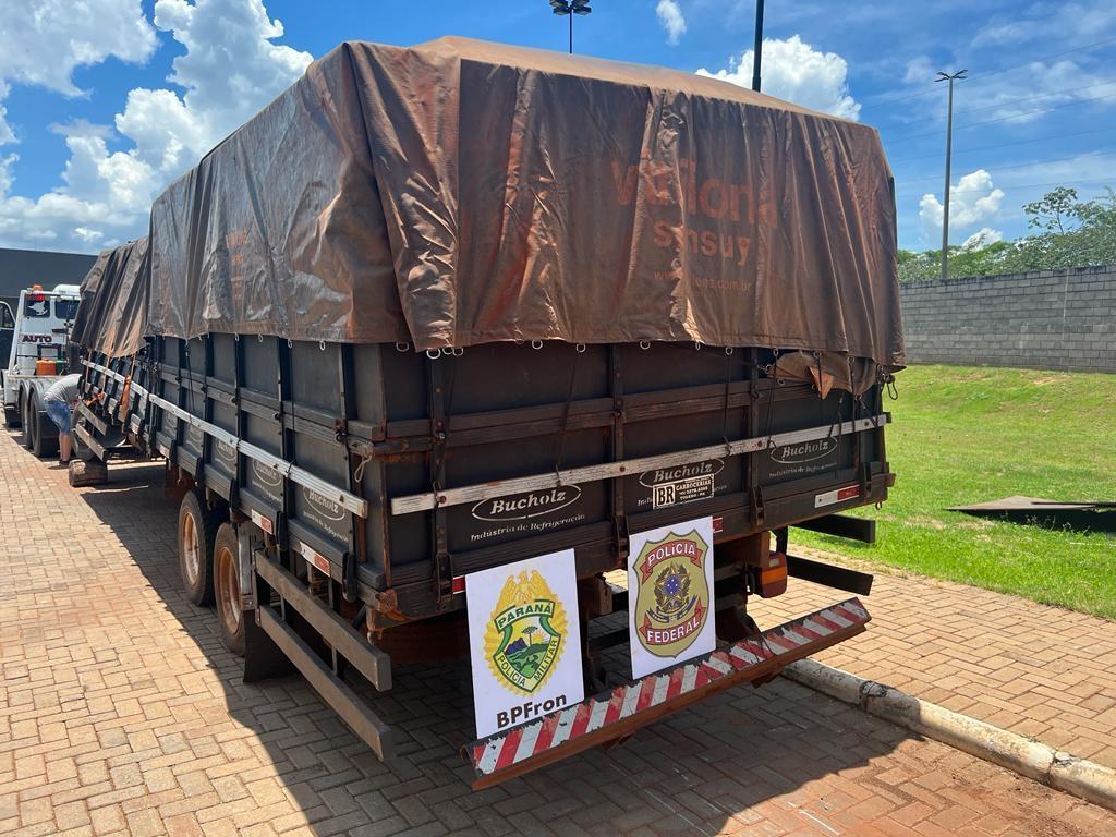 O caminhão, cigarro e os pneus apreendidos foram encaminhados à Polícia Federal em Guaíra.