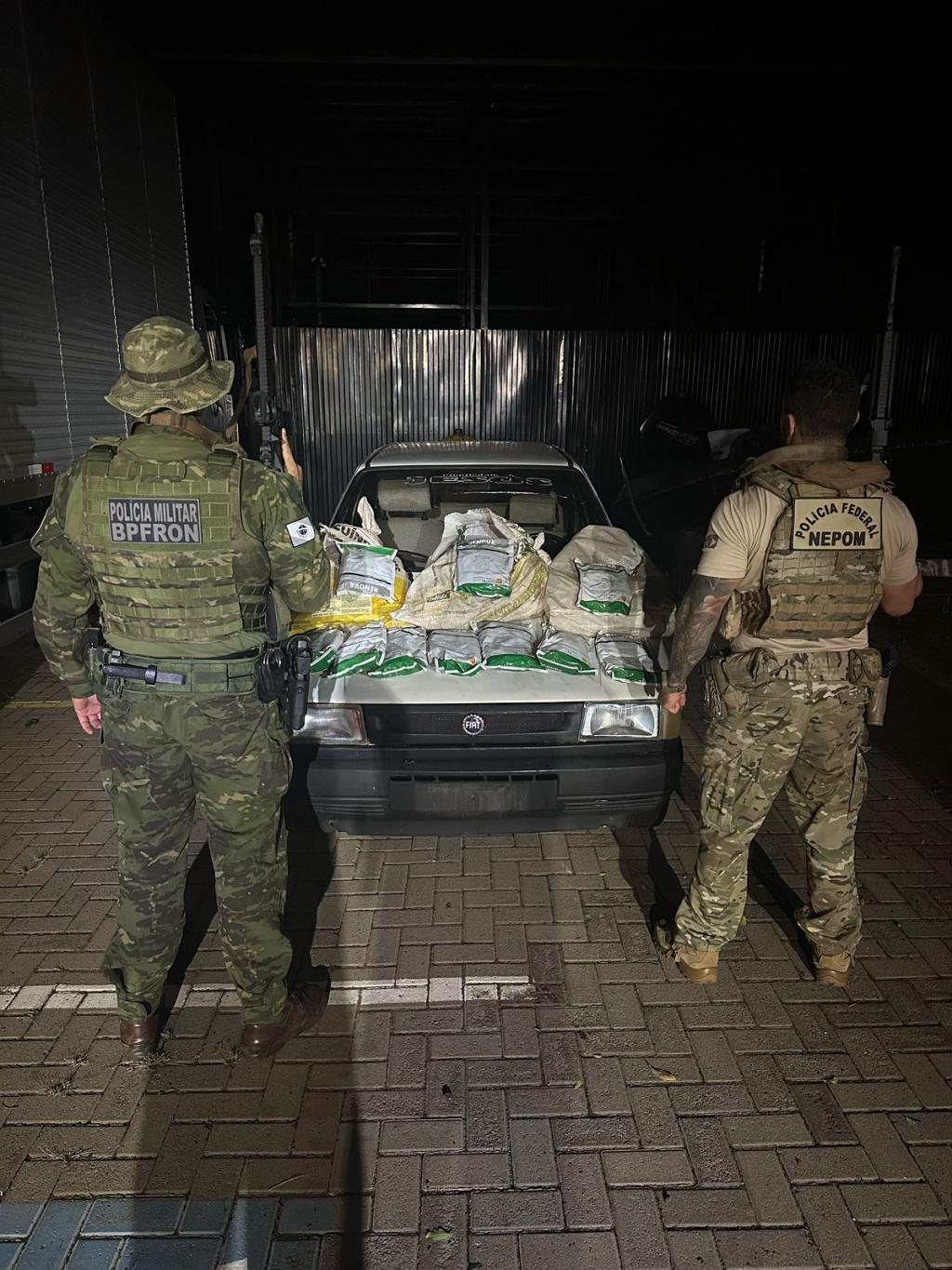 Segundo informações da polícia, um Fiat/Uno foi localizado estacionado em uma esquina da cidade. Durante a abordagem, os agentes iluminaram o interior do automóvel e visualizaram diversos volumes suspeitos.