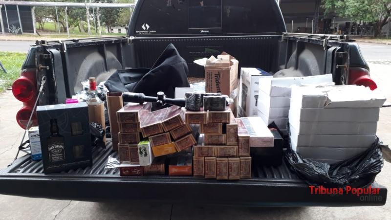 Na ação policial, duas pessoas foram presas em flagrante, sendo apreendidos cigarros contrabandeados, miras telescópicas, armas a gás, anabolizantes, pneus, celulares, um veículo e uma embarcação, além de 01 espingarda calibre 12, municiada com 06 cartuchos intactos.