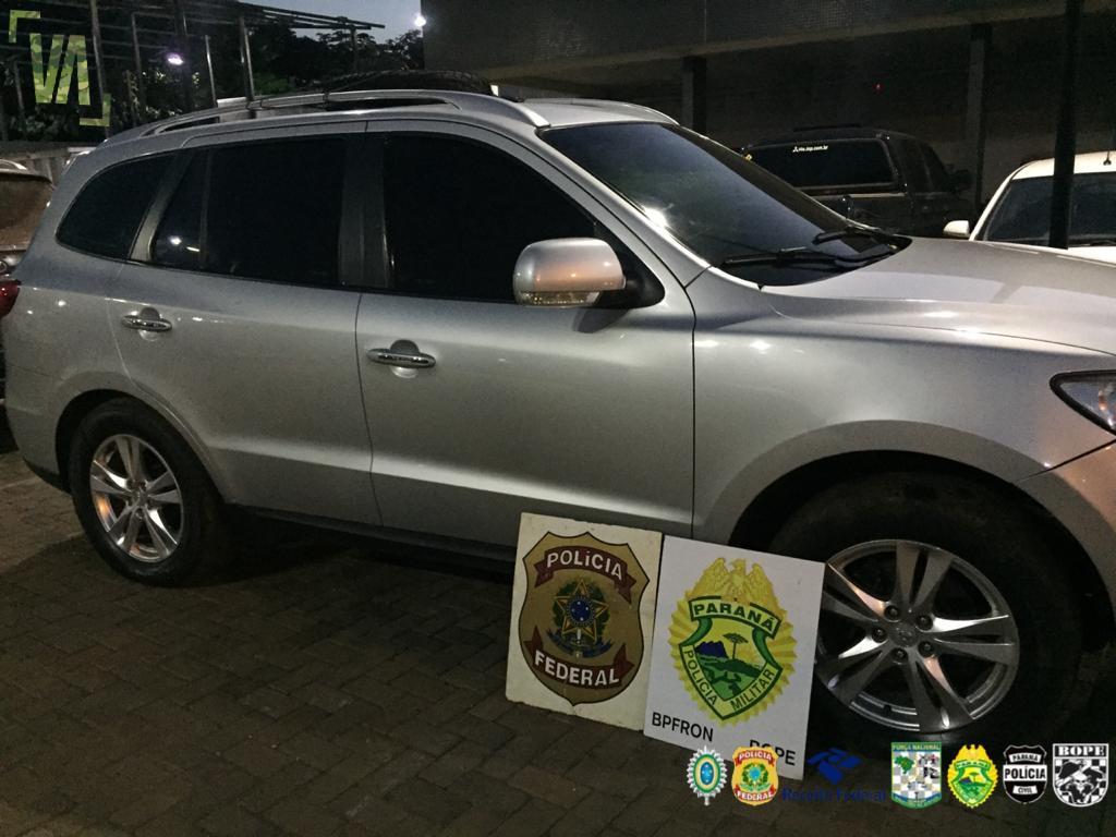 As equipes notaram a presença de dois veículos Hyundai Santa Fé no local informado, sendo que, na tentativa de abordagem, um veículo foi abandonando no local e o outro iniciou fuga em direção à cidade e durante o acompanhamento os policiais chegaram a um ponto conhecido como “mocó” (esconderijo em meio à mata) onde estavam mais sete veículos carregados com cigarros contrabandeados.
