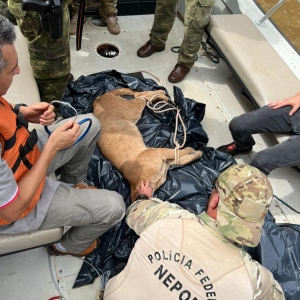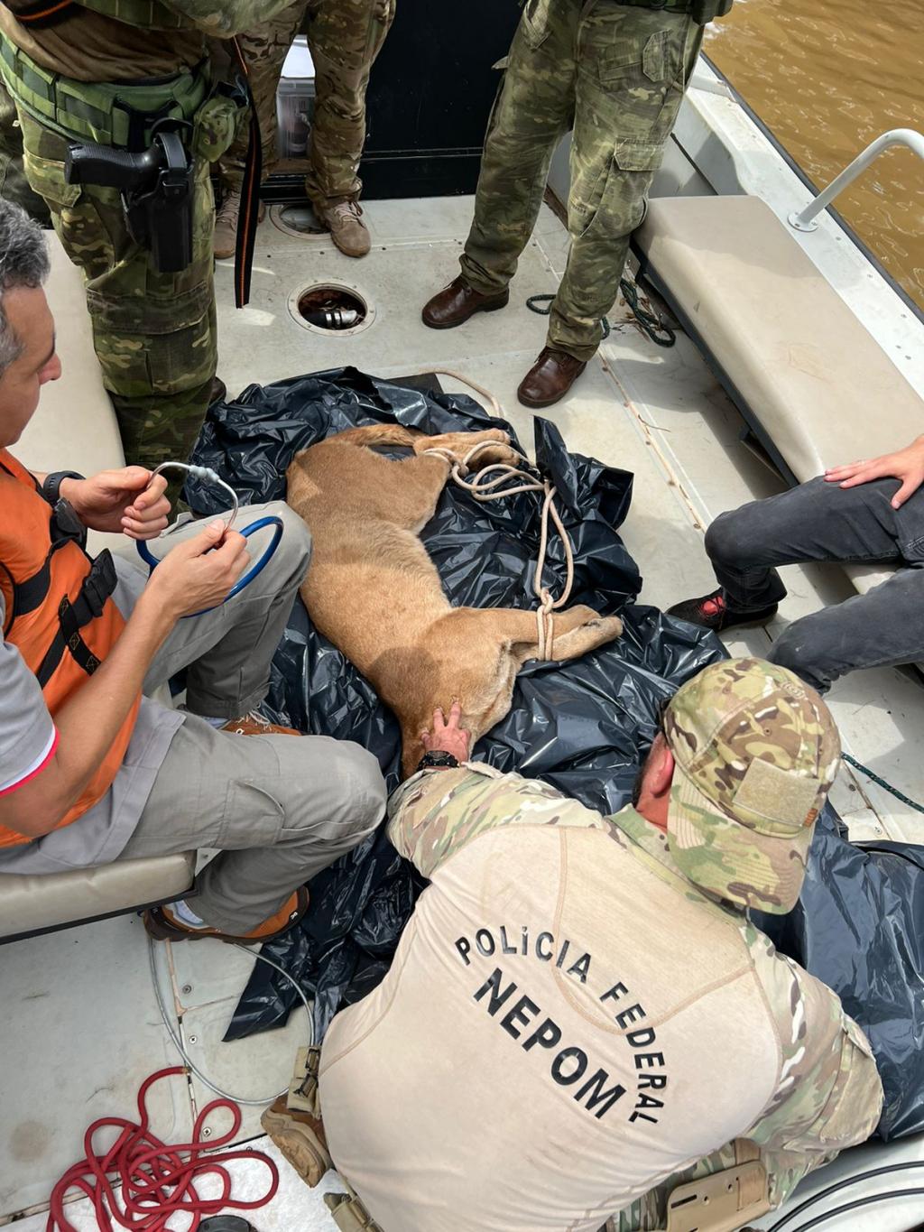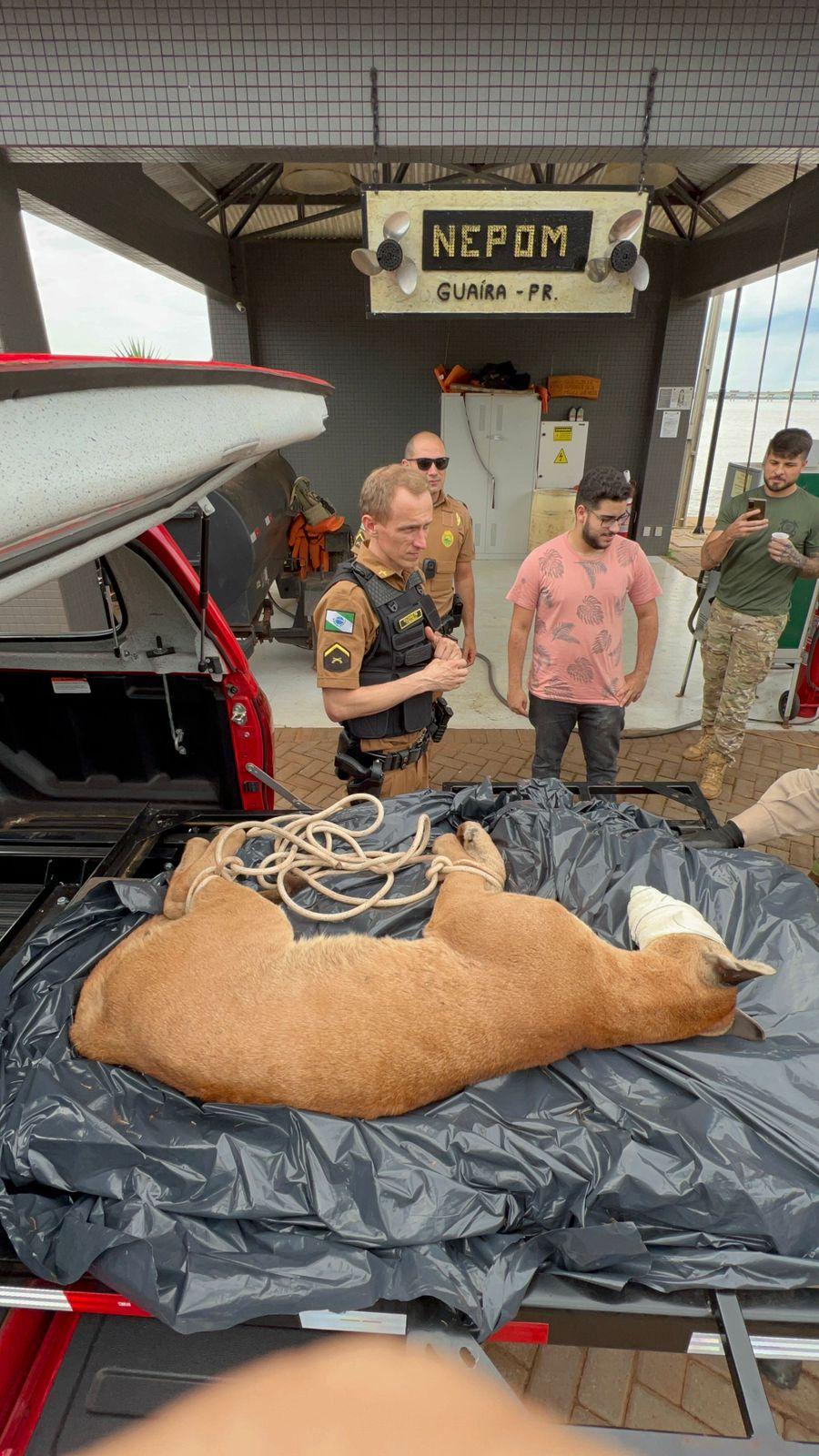 O animal foi escoltado até a Base Nepom da PF de Guaira para que fosse escoltado de barco ao longo do Rio Paraná até local distante dentro do Parque Nacional da Ilha Grande - local definido pelas autoridades para sua soltura.
