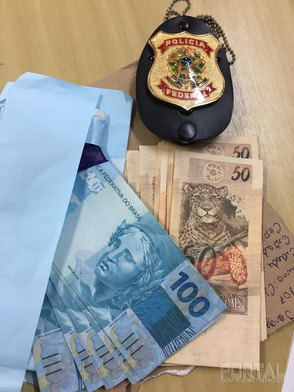 A encomenda veio da região do ABCD de São Paulo, Diadema, a Polícia Federal comunica para que todos fiquem atentos na região na hora de receber notas, pois pode haver um derramamento de notas falsas na região.