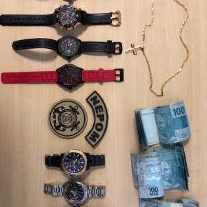 Também foram apreendidos valores, relógios e uma corrente. Caso alguém consiga identificar algum desses produtos, podem procurar a Polícia Federal de Guaíra, com documentos que comprovem a propriedade (cópia do Boletim de Ocorrência, fotos, nota fiscal, etc.)