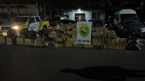 A Polícia Militar apreendeu mais de uma tonelada de maconha em uma propriedade localizada na Estrada da Usina, em Toledo, na madrugada de sábado (15).