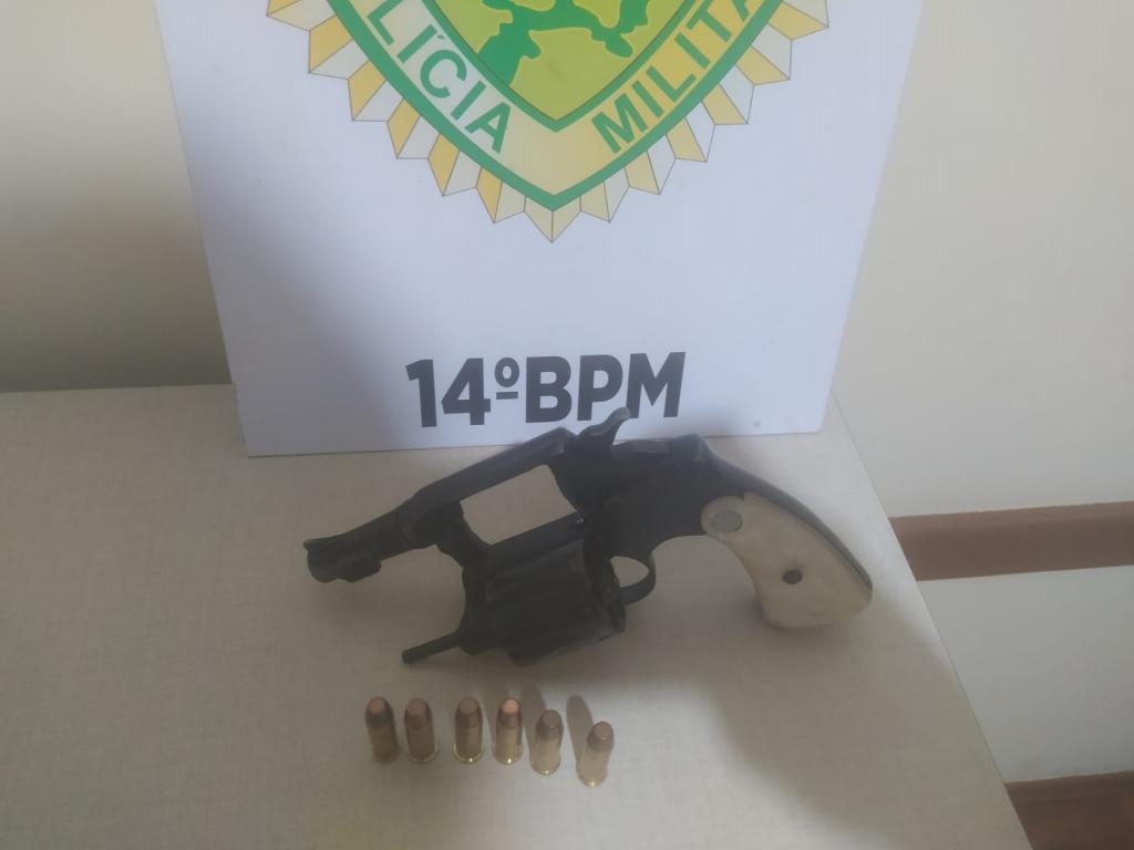 Ao efetuarem revista no veículo, foi localizado, em baixo do banco do motorista, um revólver calibre 38 com 6 munições intactas. Aos policiais, o motorista admitiu ser o proprietário da arma de fogo.