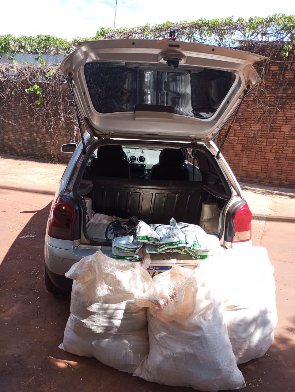 O automóvel foi seguido à distância até ser interceptado em um trecho de reforma asfáltica. Durante a abordagem, os policiais constataram que o condutor não possuía habilitação. Questionado sobre a carga transportada, ele revelou que estava carregando agrotóxicos adquiridos em Terra Roxa-PR, oriundos do Paraguai.