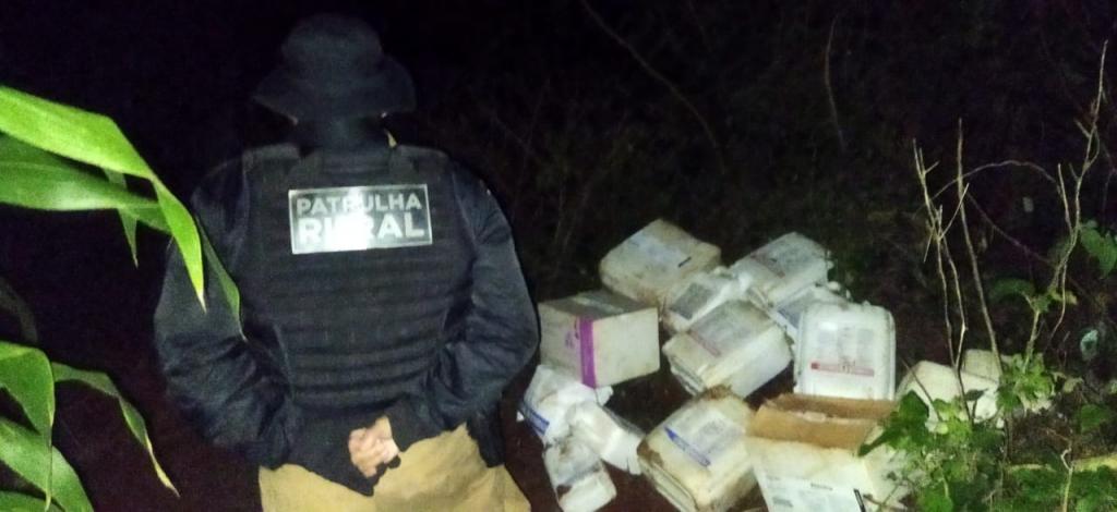 Após denúncia a equipe da Patrulha Rural da Polícia Militar localiza defensivos agrícolas, tendo provável origem em furtos ocorridos no dia 9 de maio quando a PM de Palotina e Maripá registraram o arrombamento de três propriedades rurais, defensivos agrícolas e ferramentas foram furtados na oportunidade.