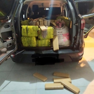 Após vistoria no interior do veículo, foi constatado que o mesmo transportava 22 fardos, totalizando 496 kg de maconha e um saco contendo 59 pacotes a vácuo, totalizando 12,700 kg de uma substancia conhecida como “Skank”, sendo considerada uma droga de alto poder aquisitivo, podendo chegar a custar aproximadamente 40.000 mil reais o kg.