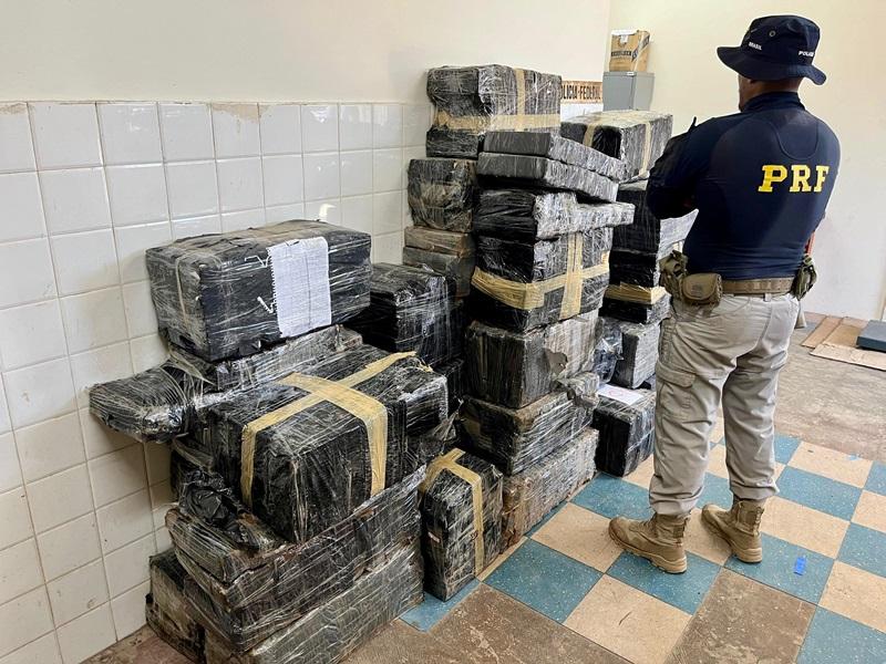 Ao retornar para o veículo, foi realizada a fiscalização do caminhão e do semi reboque, sendo encontrada grande quantidade de maconha em formato de tabletes, posteriormente feita a pesagem de 1.045Kg da droga.