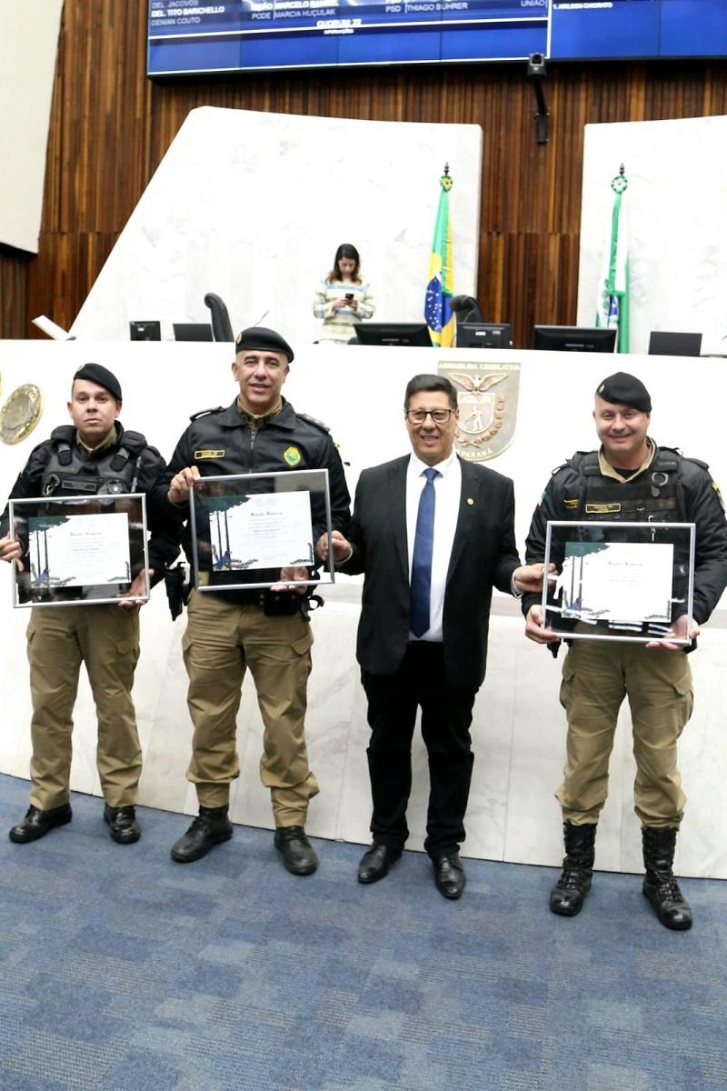 Três policiais militares da 2ª Companhia do 31º Batalhão da Polícia Militar, com sede em Palotina, receberam uma homenagem especial na tarde desta terça-feira (24), na Assembleia Legislativa do Paraná (ALEP), em Curitiba.