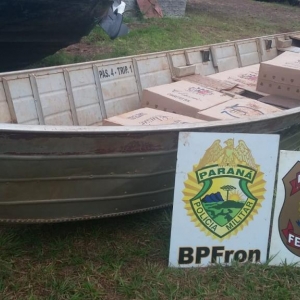 No local foi realizada a prisão de flagrante de um homem e apreensão de uma embarcação de alumínio e um Volkswagen Gol carregados com aproximadamente 30 caixas de cigarros paraguaios, um prejuízo estimado em R$100.000,00 para a organização criminosa.