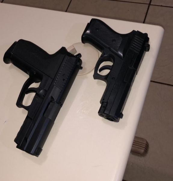 Diante da situação, a equipe iniciou o procedimento de abordagem e logrou êxito em realizar a apreensão de dois menores de idade, ambos portando réplicas de armas de fogo.