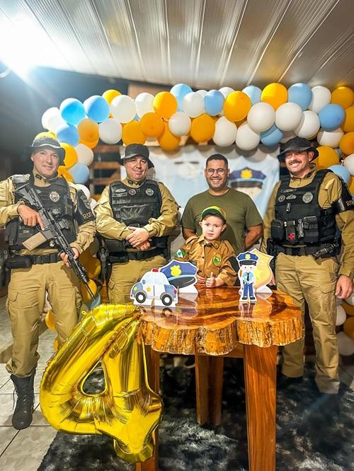 Na noite de sábado, 09 de novembro de 2024, policiais militares, da Patrulha Rural 2⁰ Companhia, participaram das comemorações de aniversário do pequeno Patrick, morador da linha Sanga Tupi, e admirador da Polícia Militar do Paraná.