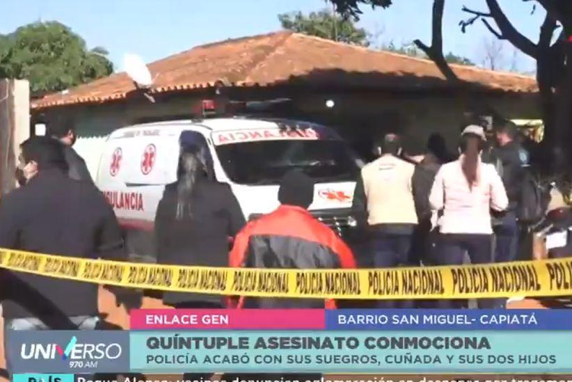 As vítimas fatais são Alberto de la Cruz Riveros Benítez, de 51 anos, sogro do policial, e a mulher dele, Amalia Portillo, de 50 anos; os filhos do assassino, Amalia, de 2 anos, e Amílcar, de um ano; e uma das cunhadas, Liliana, de 16 anos. Ele feriu ainda uma adolescente também de 16 anos e um menino de 11.
