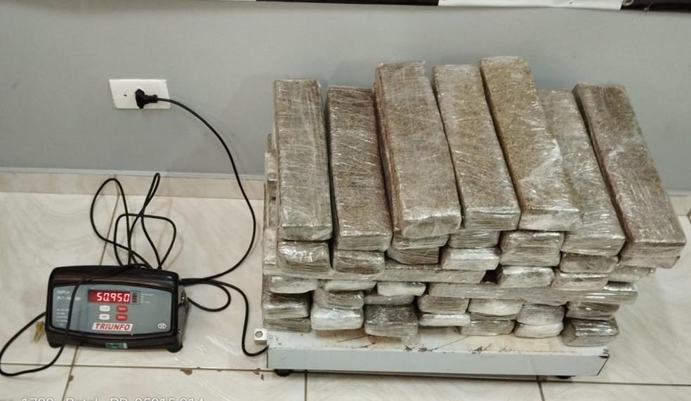 Os policiais, então, perseguiram o carro que foi para a rodovia e, ao conseguir abordá-lo, encontraram mais de 50 kg de maconha.