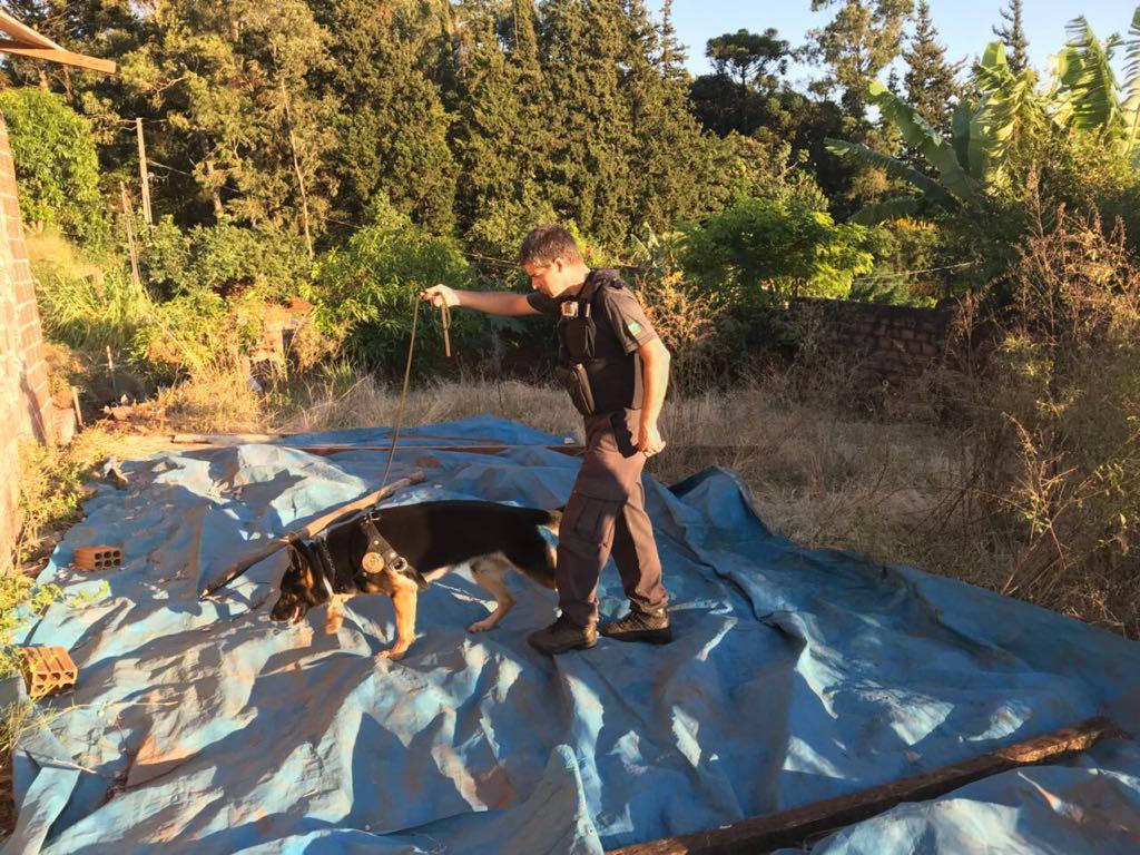 Uma Equipe do Canil da Polícia Federal foi empregada na Operação para a localização das drogas.
