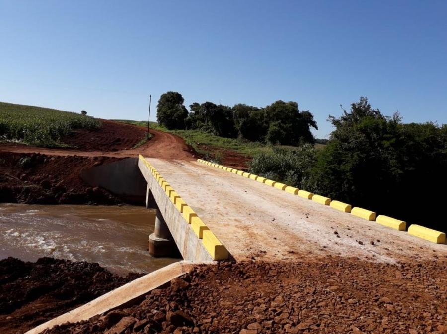 A ponte de concreto, que tem 31,40 metros de comprimento e 6,30 metros de largura, recebeu um investimento de cerca de R$ 456 mil por meio de um convênio entre os municípios e a Itaipu Binacional.