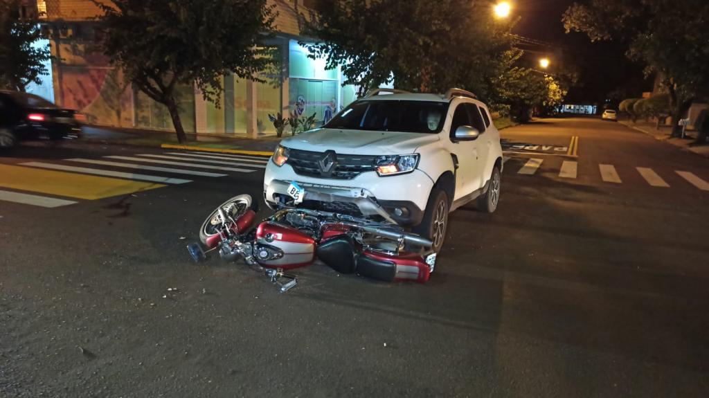 Um acidente entre um carro e uma moto foi registrado por volta das 19h15 desta quinta-feira no cruzamento da rua general Alcides Ethiegoi com rua Terra Roxa no bairro Santa Maria em Toledo e envolveu um veículo Renault Duster com placas Mercosul e uma moto de 600 cilindradas com placa de Toledo conduzida por um homem de 42 anos.