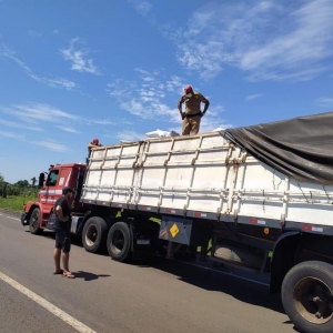 Durante a abordagem, o condutor informou que carregou o caminhão com sementes de Chia em Sete Quedas/MS e levaria para a cidade de Mogi Guaçu/SP.