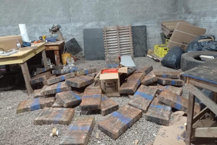 Ao chegar no barracão, os cães farejadores identificaram a substância análoga a maconha em caixas colocadas em diversos cômodos e em um porão com uma tampa oculta.