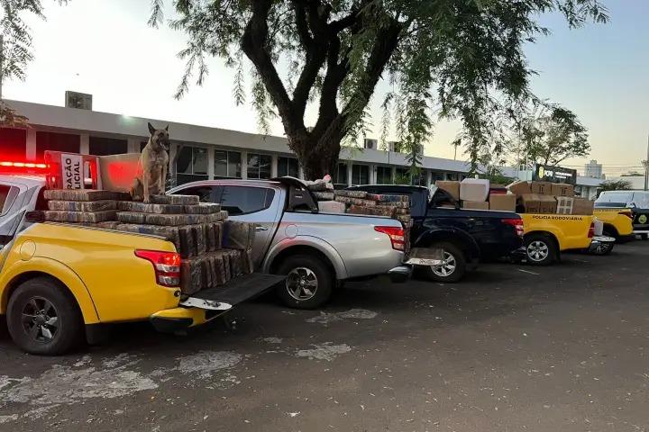 A droga, os veículos e os documentos apreendidos foram encaminhados para a delegacia da Polícia Civil de Maringá para os procedimentos cabíveis.